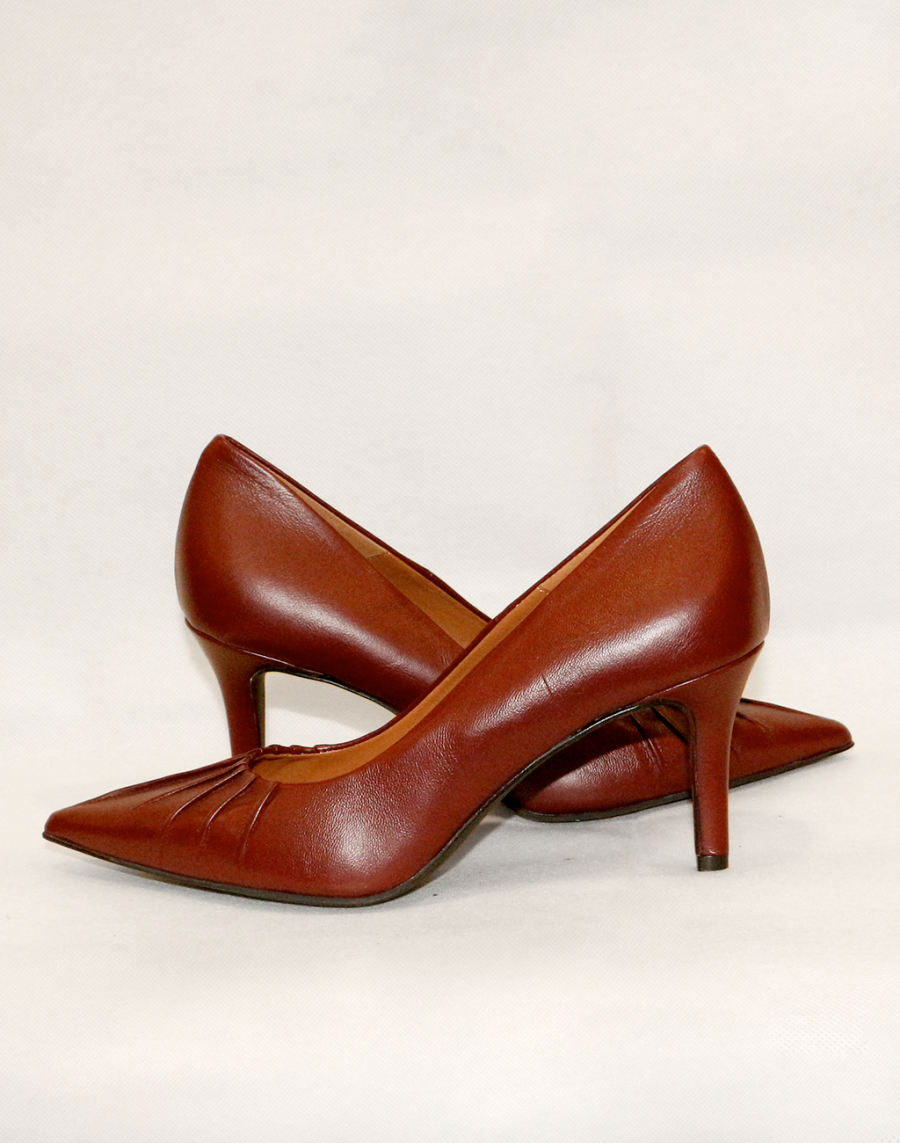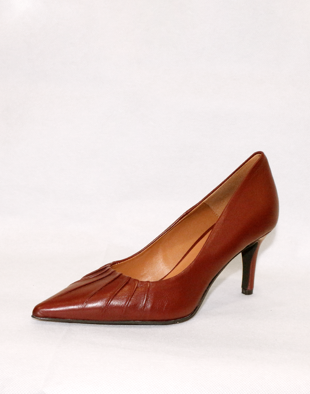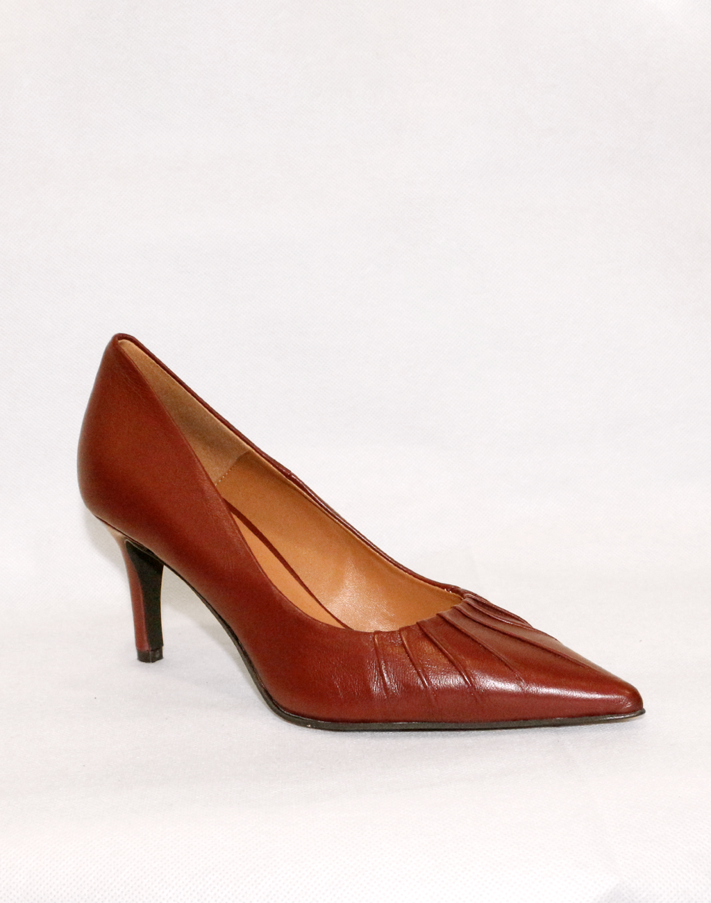 Decolleté femminile in nappa bordeaux con dettaglio plissé. Fodera in pelle, fondo tunit e tacco 7 cm per una linea elegante.