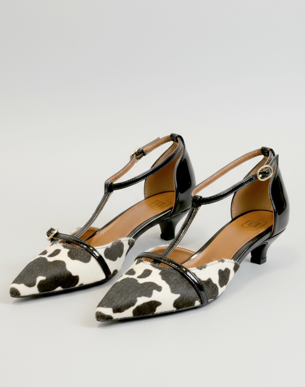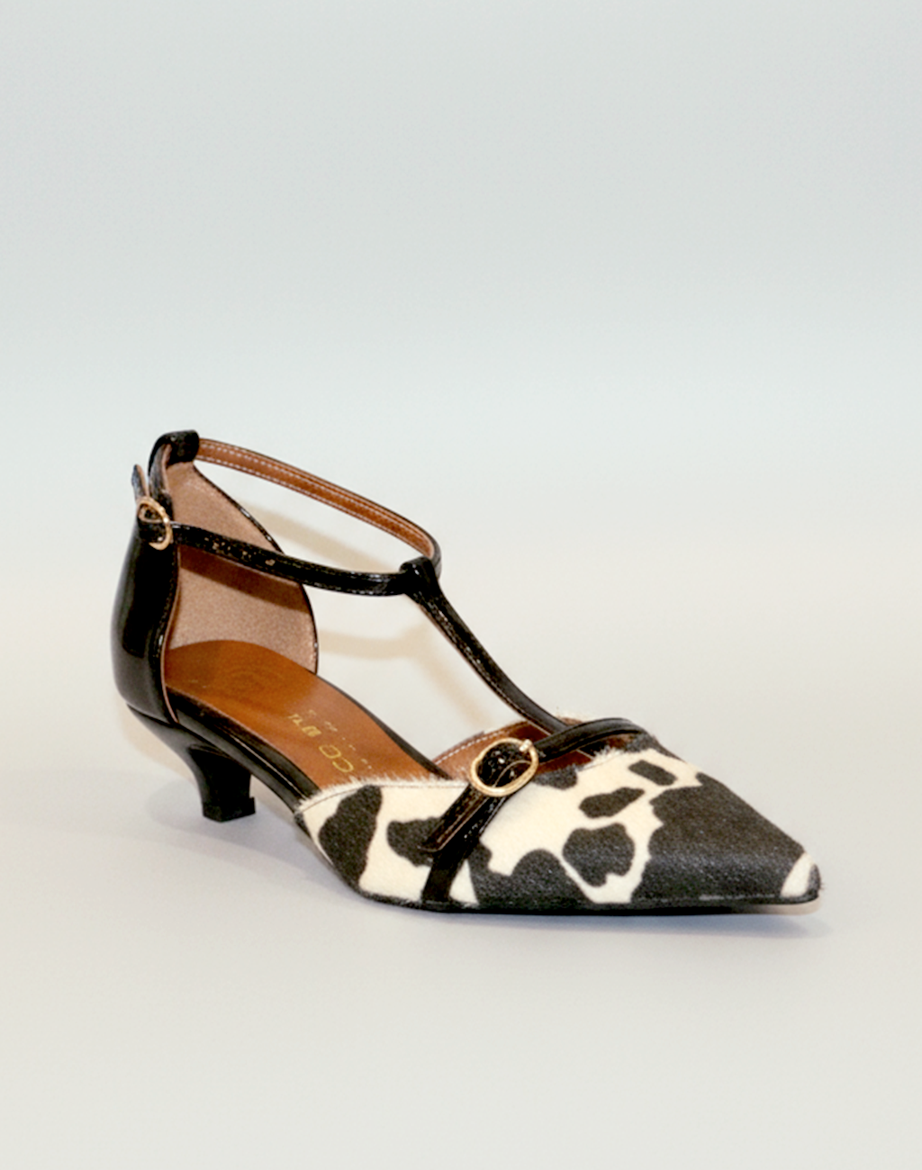 Scarpe eleganti in pelle mucca con finitura verniciata nera. Fondo tunit e tacco 3.5 cm. Ideali per un tocco moderno e brillante.